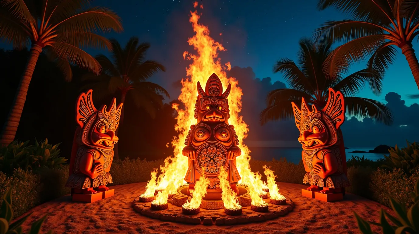 A simbologia das fogueiras cerimoniais vai além da luz — elas representam um ponto de contato com os Atua espíritos Polinésia, agentes de transformação, purificação e poder.