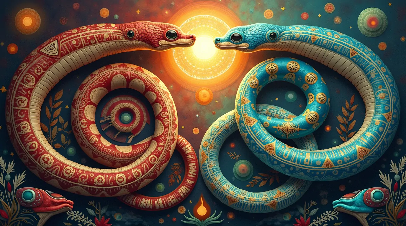 Se há um símbolo que ecoa em muitas mitologias indígenas, é a serpente, que representa a constante renovação da vida. Sua capacidade de mudar de pele é vista como símbolo da regeneração e cura. Nas tradições nativas, a serpente é guardiã dos mistérios da existência, revelando que a vida é um ciclo pulsante que resiste à destruição pela força do renascimento.