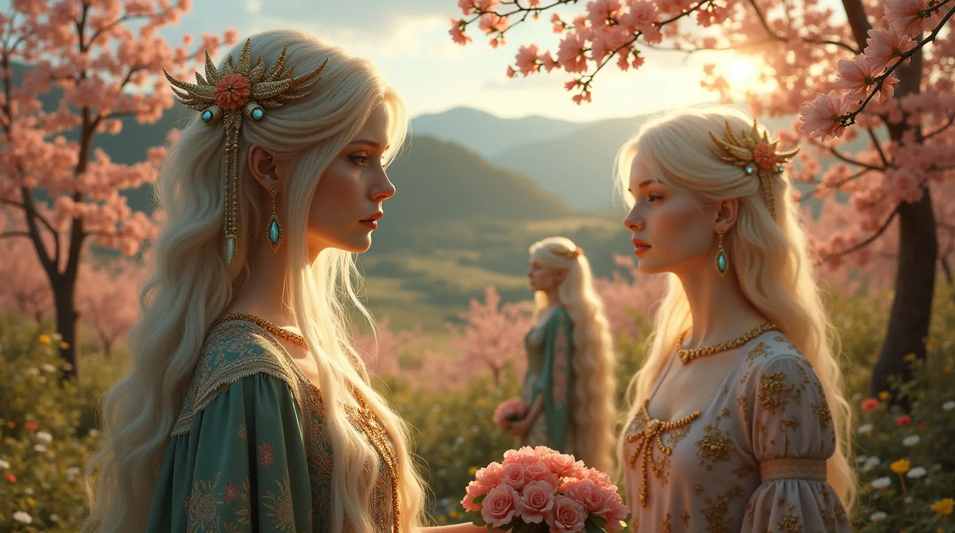 A importância desse culto está enraizada em um legado folclórico rico, transmitido oralmente por gerações, onde histórias de deusas como Vesna, Lada e Živa enfatizam a harmonia entre a beleza que floresce nas florestas, campos e rios e o equilíbrio do cosmos. Fontes folclóricas antigas, poemas e canções populares revelam que o culto à beleza natural na mitologia eslava era tão central quanto os mitos heroicos — uma RELAÇÃO vital entre o humano e o divino.