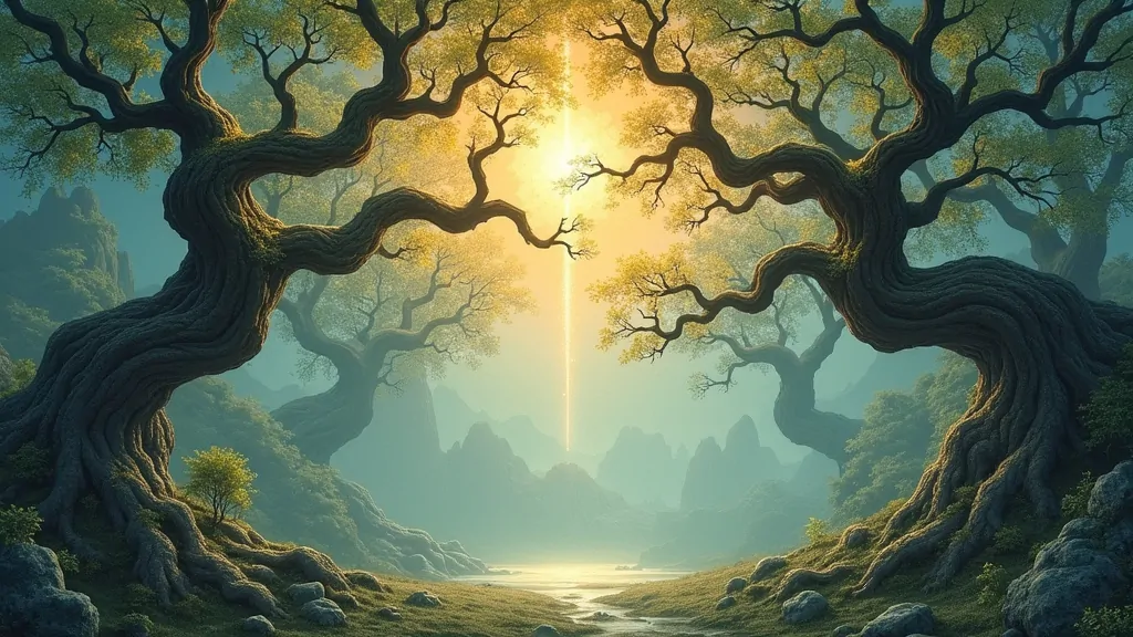 Embora Yggdrasil seja originalmente uma árvore mítica da mitologia nórdica que conecta diferentes mundos através de seus ramos imensos, existe uma versão adaptada na mitologia japonesa onde árvores gigantes simbolizam conexões entre os mundos espiritual e físico. Essas árvores podem ser vistas frequentemente como portais para outras dimensões ou reinos habitados por espíritos benevolentes.