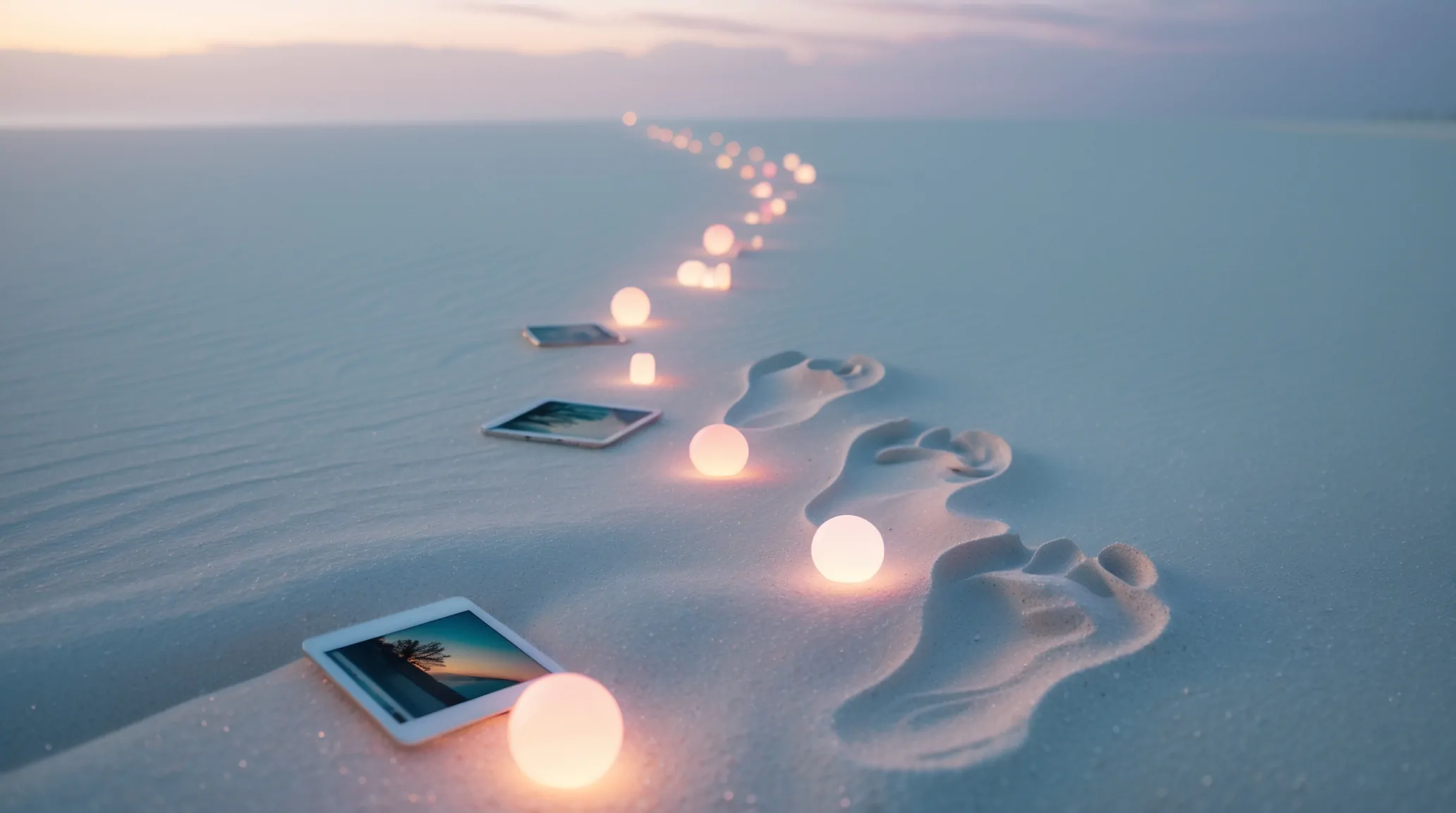 Na psicologia dos sonhos, essa caminhada pode denotar a necessidade de perceber o presente, estar atento a detalhes e manter os pés no chão, mesmo frente a transformações. A areia branca ali é um convite a aceitar a fluidez da vida sem perder a direção.