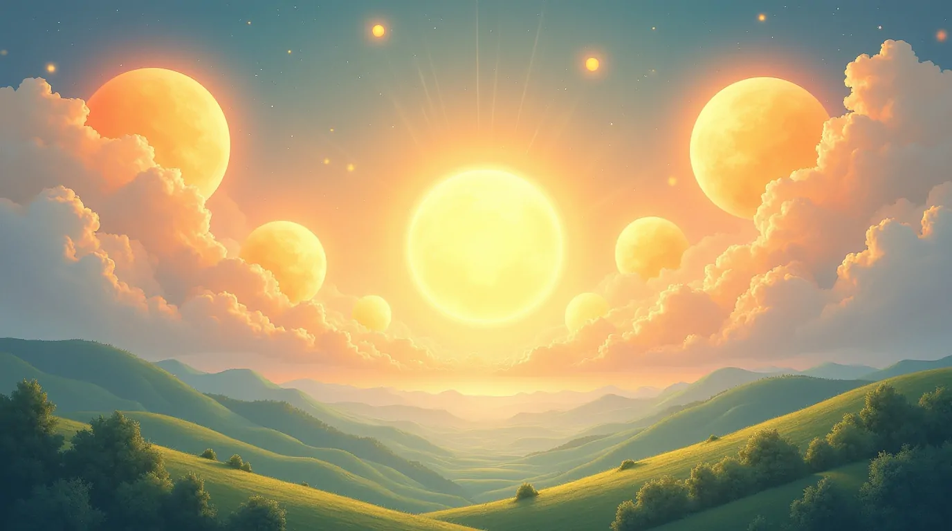 Sonhar com múltiplos sóis pode prenunciar mudanças positivas, novas oportunidades e um despertar espiritual. É um sinal de que você está no caminho certo e que coisas boas estão por vir.